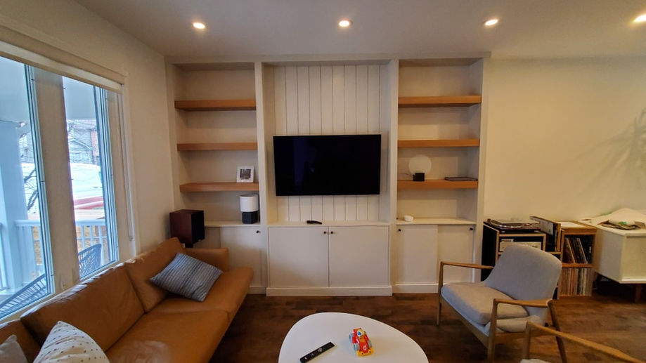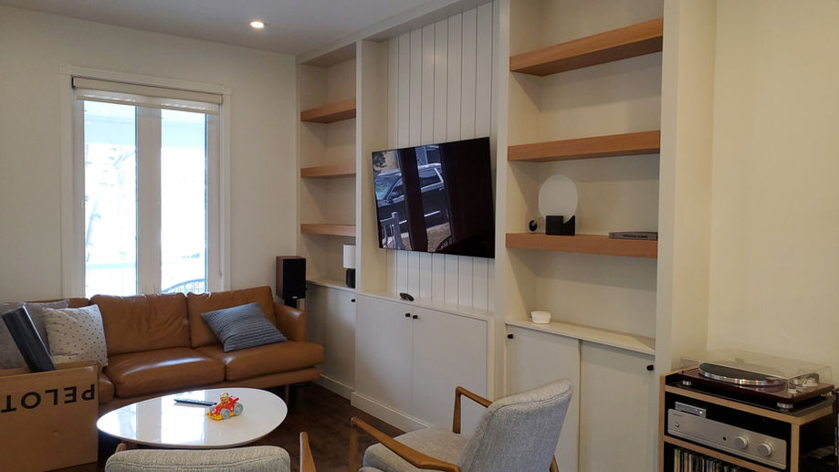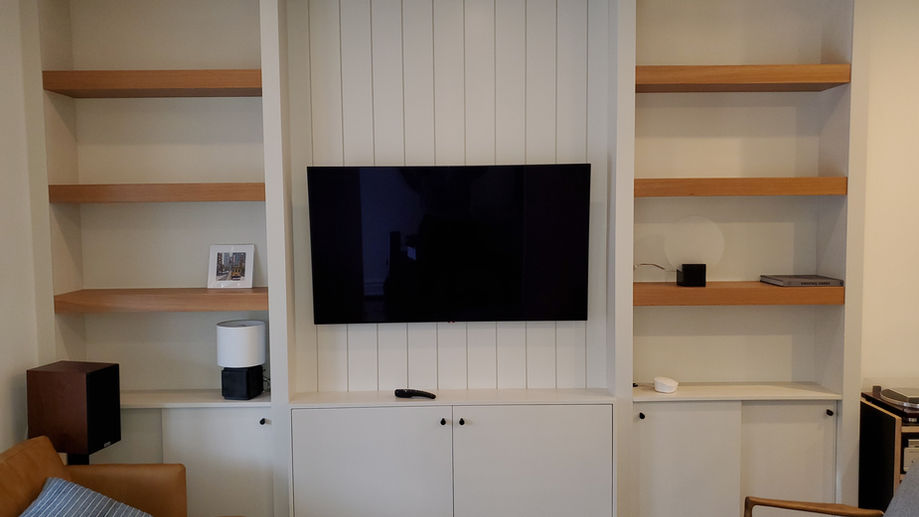 Contact us with your custom carpentry and cabinetry needs, including kitchens, vanities, built-ins, shelving units, baseboard and trim, doors, feature walls, walk-in closets, organizers, and more.
